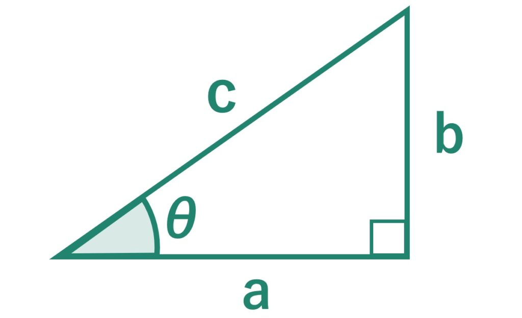 直角三角形の2辺から傾斜角度(θ)と残りの1辺を求めることができます。